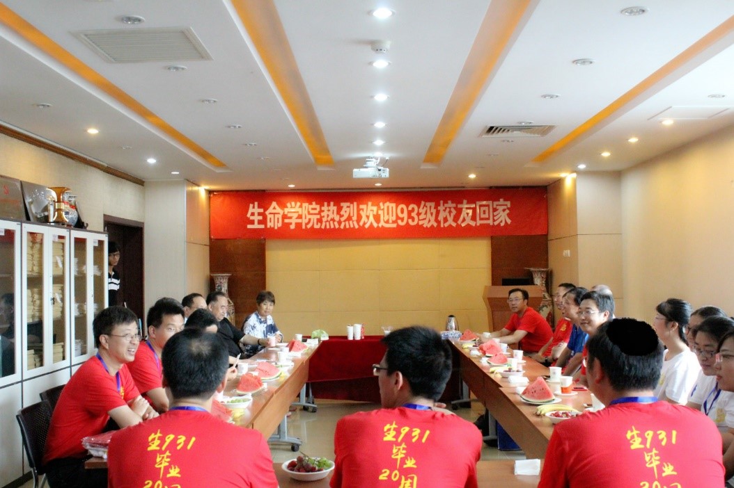 2017年7月15日,生命学院热烈欢迎93级校友返校,并于科技大厦302会议室举办欢迎茶话会,生命学院副院长罗施中、任课老师代表陈劲春老师,张鹏老师和张淑荣老师出席茶话会。春风化雨,师恩难忘,93级校友返校为学院带来了美好的师生记忆,以及勤奋上进,踏实肯干的拼搏精神。