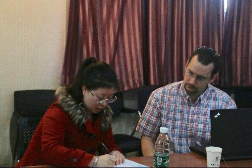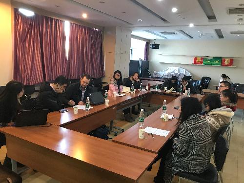 由喻长远教授实验室的李泽浩、李丽丹、郝丹丹、楼圣婷、蔡爽五位博士生、研究生通过展示自身研究方向与Alex博士进行了深入的探讨与交流,交流形式不局限于多媒体展示,一张纸,一支笔就足以搭建起沟通的桥梁,本次交流会让同学们受益匪浅,在今后的研究思维与方式方法上都有了新的体会。
