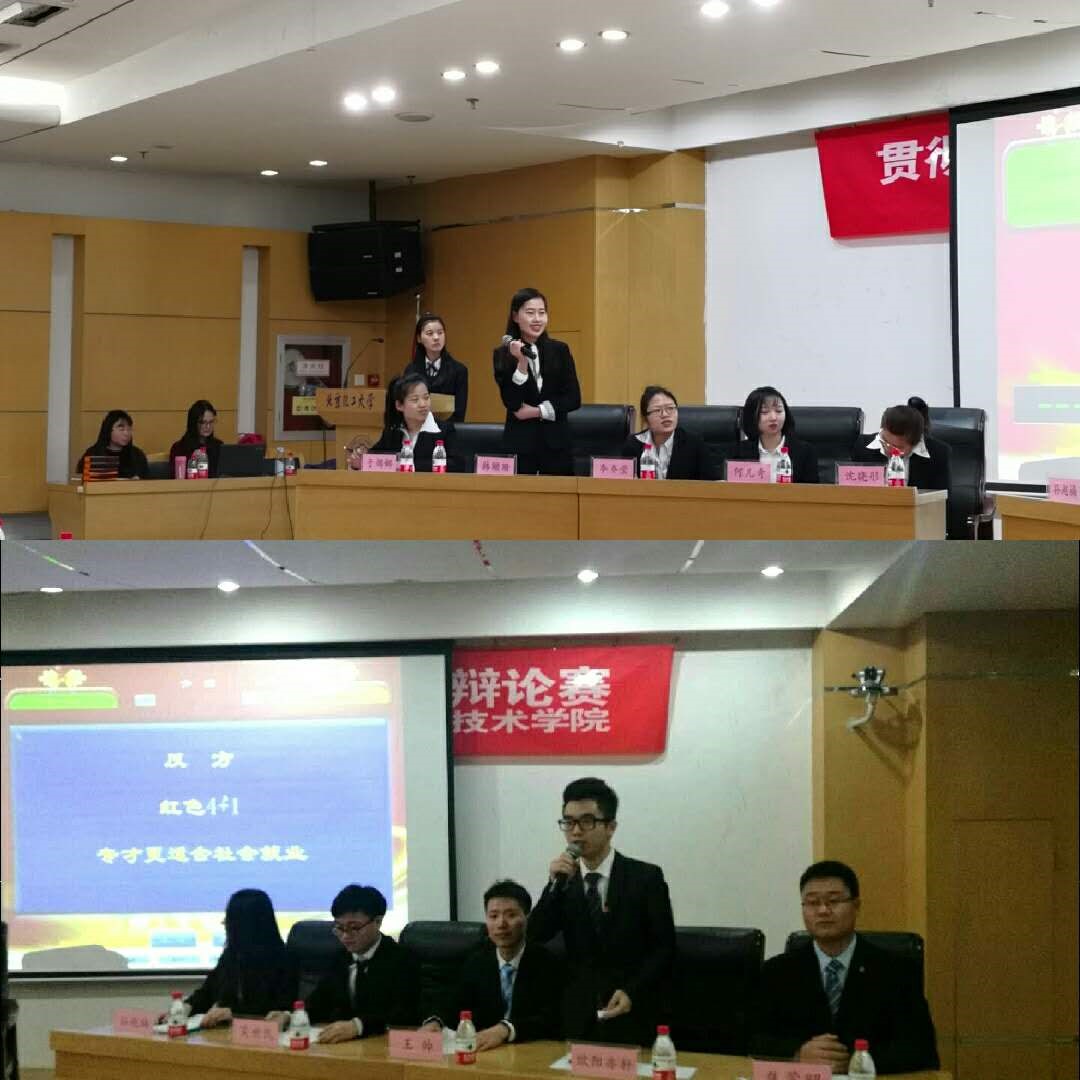 为了学习宣传贯彻落实党的十九大会议精神,深入学习贯彻习近平新时代中国特色社会主义思想,来自研二的正方“荣耀战队”和来自研一的反方“红色4+1队”围绕“在中国特色社会主义新形势下,全才/专才更适合社会就业”展开辩论。
