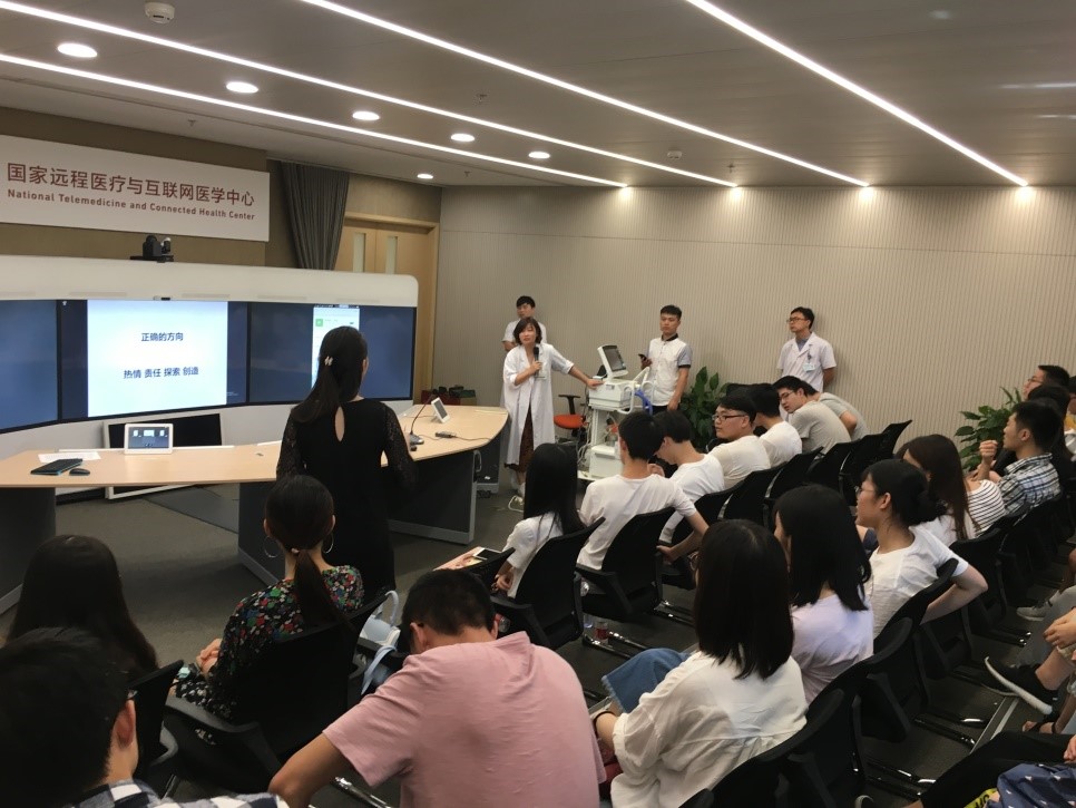 为了让同学们更加设身处地的了解医疗设备使用情况,中日医院为北京化工大学生物医学工程专业的同学们精心安排了实地观摩和交流环节。医工处选择了互联网医疗的前沿阵地——远程医疗、设备相对先进的国际部、设备相对集中的检验科和放射科进行参观,相关科室的设备负责人给同学们详细介绍了本科室的设备使用情况、基本设备参数、设备使用流程、设备诊疗流程、质控流程等,同时和同学们进行了现场交流。