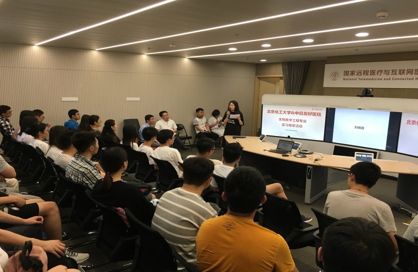 2018年6月20日下午,北京化工大学生命科学与技术学院组织第一届(2015级)生物医学工程专业学生41人在苏昕和戚昊辰老师的带领下,来到中日友好医院,进行“医疗设备”主题实践观摩活动。活动采用集中授课、心得分享、实际设备演练以及实地观摩、现场交流互动等方式,向同学们展示了设备在医院的应用,以及医学工程学科在中日医院的发展。