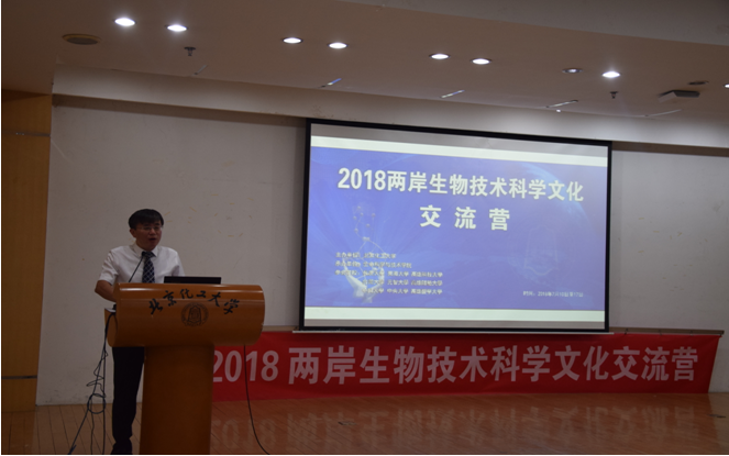 7月11日,由我校生命科学与技术学院举办的“2018两岸生物技术科学文化交流营”在我校图书馆多功能厅举行。参与本次活动的有来自北京化工大学、中兴大学、台湾大学、高雄师范大学、高雄科技大学、北京理工大学、中央大学等十几所高校的近两百名师生。我校副校长王峰教授、人才办主任袁其朋教授、国际处毛立新处长以及来自台湾的教师代表王慧民教授等特邀嘉宾与教师出席开幕式。