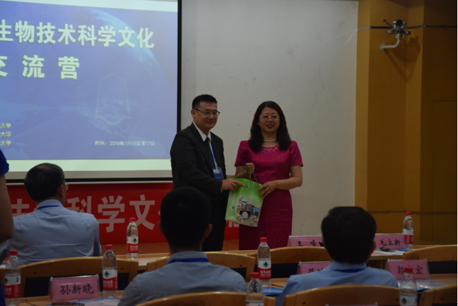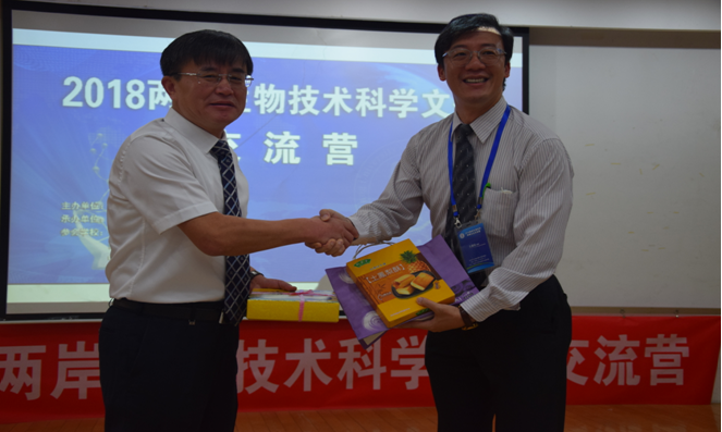 王峰副校长致辞并与台湾教师代表王慧民教授互换礼物。王峰副校长表示,北京化工大学与台湾各高校之间的合作交流,不仅是海峡两岸的一场大型学术盛会,同时也是两个老朋友之间的感情交流。他希望在本次生物技术文化交流活动中,两岸师生都能碰撞出思想的火花,在学术领域上迈向世界前沿;同时他也希望两岸师生都能亲如一家,努力加深来之不容的兄弟情谊。