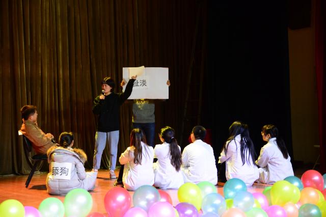 晚会以一曲轻快的《阳光彩虹小白马》拉开序幕,迷离的灯光,欢快的舞步,点燃了在场每一位观众的热情。接下来是文艺部部长李雪健和搭档张斯琪师兄表演相声《打灯谜》,接地气的内容惹得众人笑声不断,纷纷拍手叫好。
