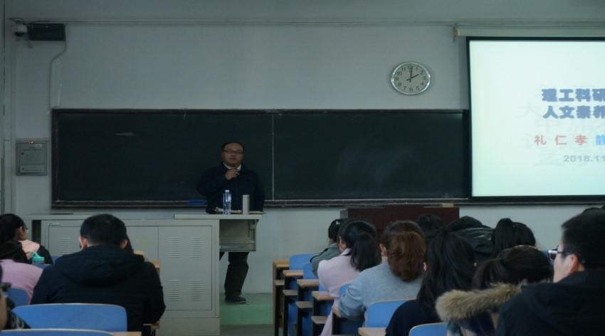 为了使理工科研究生了解华夏文明,学习传统文化,研习圣贤之学,辨析中西差异。我院于11月16日下午2:00-4:00在主教楼402举办了以“理工科研究生的人文素养修炼”为主题的人文讲座,本次讲座由我校研究生院学科办公室主任员荣平老师主讲,吸引了很多学生前来学习交流。