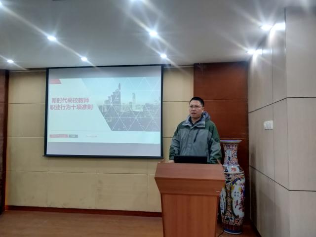 童贻刚院长最后总结,《十项准则》为教师职业行为划底线、明确职业规范,是师风师德建设的进一步深化,是全社会塑造教师美好形象的重要举措。要求我院教职工深入透彻学习,担好高校学生工作者教书育人的重大使命,坚持以立德树人为根本,落实好、执行好《十项准则》,不仅要做一名专业科技知识的传播者,也要做好引导学生立身做人的导师。