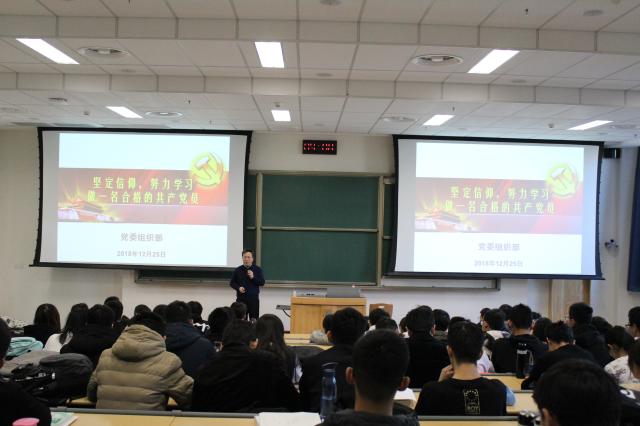 为深入贯彻落实党的十九大精神和习近平新时代中国特色社会主义思想,深入学习习近平总书记在庆祝改革开放四十周年大会上的重要讲话精神,12月25日上午,校党委副书记甘志华在昌平校区为生命学院学生党员以及入党积极分子带来了以“坚定信仰,努力学习,做一名合格的共产党员”为主题的党课学习辅导报告。生命学院全体学生党员、入党积极分子以及学生骨干参加了本次党课学习。活动由生命学院党委副书记曹辉主持。