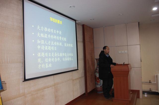 罗施中副院长作了补充发言,他重点指出下一步学校可能会出台科研报奖方面的激励措施,鼓励各老师积极申报课题和奖项,主动加强合作,争取实现更大突破。