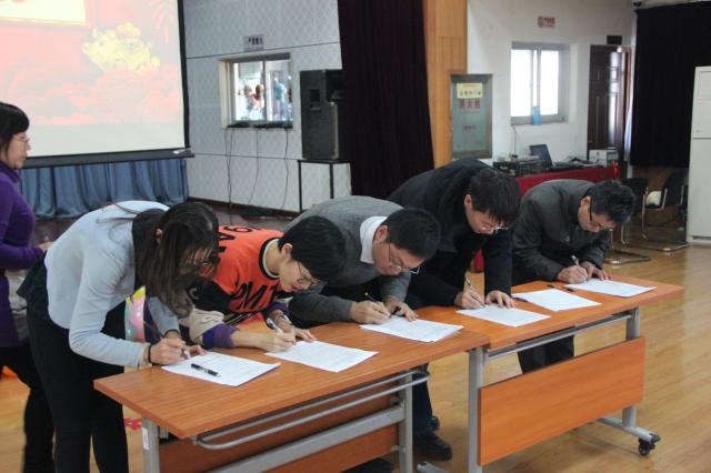 茶话会尾声,学院党委书记喻长远带头学习并签署了《师德师风承诺书》。全体教职工在贺卡上写了自己的新春寄语,汇成了一面寄语板图,寓意生命学院全体教师在2019年凝心聚力,共话未来。