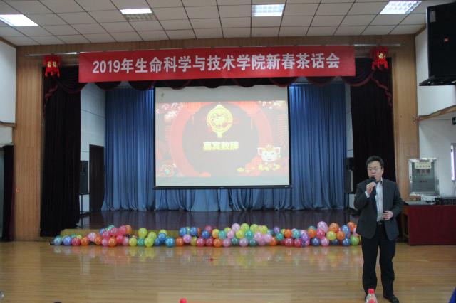 “凝心聚力,共话新春”。1月15日下午,2019年生命科学与技术学院新春茶话会在工会大厅举行。校党委副书记甘志华,学院领导班子成员,全体教职工参加活动。