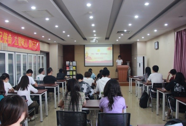 最后,贾梦秋书记,从什么是中国共产党人的初心使命,如何践行初心使命谈了自己的认识。并从深入学习理论、担当时代重任、勇于砥砺奋斗、练就过硬本领等四个方面对大家提出了希望。她最后以习近平总书记的讲话结束了自己的讲话:希望同学们胸怀大志,刻苦学习,早日成长为可堪大任的优秀人才,把学到的本领奉献给祖国和人民,让青春之光闪耀在为梦想奋斗的道路上!贾书记的讲话,既是一个微党课,也是对习近平新时代中国特色社会主义思想的深入宣讲。