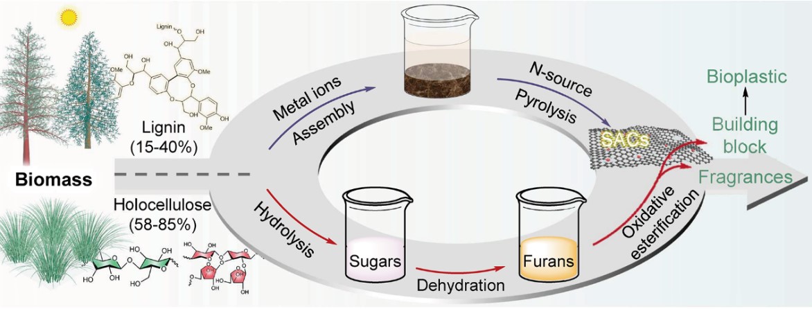 图1 木质素衍生金属单原子催化剂用于生物质转化