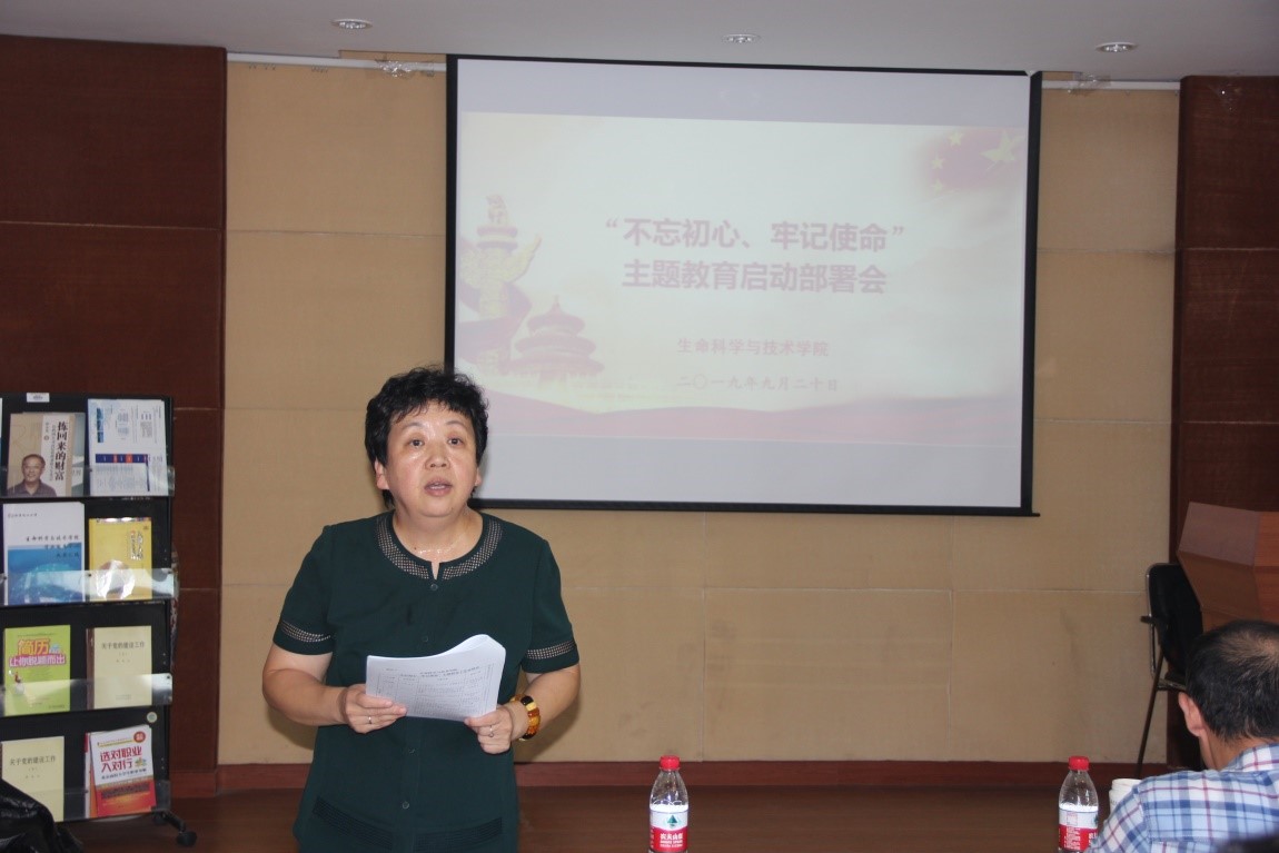 9月20日下午,北京化工大学生命科学与技术学院“不忘初心、牢记使命”主题教育启动部署会在科技大厦302会议室召开。会议深入学习贯彻习近平总书记在“不忘初心、牢记使命”主题教育工作会议上的重要讲话精神和中央“不忘初心、牢记使命”主题教育第一批总结暨第二批部署会议、北京化工大学主题教育部署会精神,安排学院主题教育工作,动员全院上下统一思想、狠抓落实,以严肃的态度和务实的作风,高标准推进主题教育,确保取得实效。学院党委书记贾梦秋、院长童贻刚及其他领导班子成员、全体教职工党员出席会议。