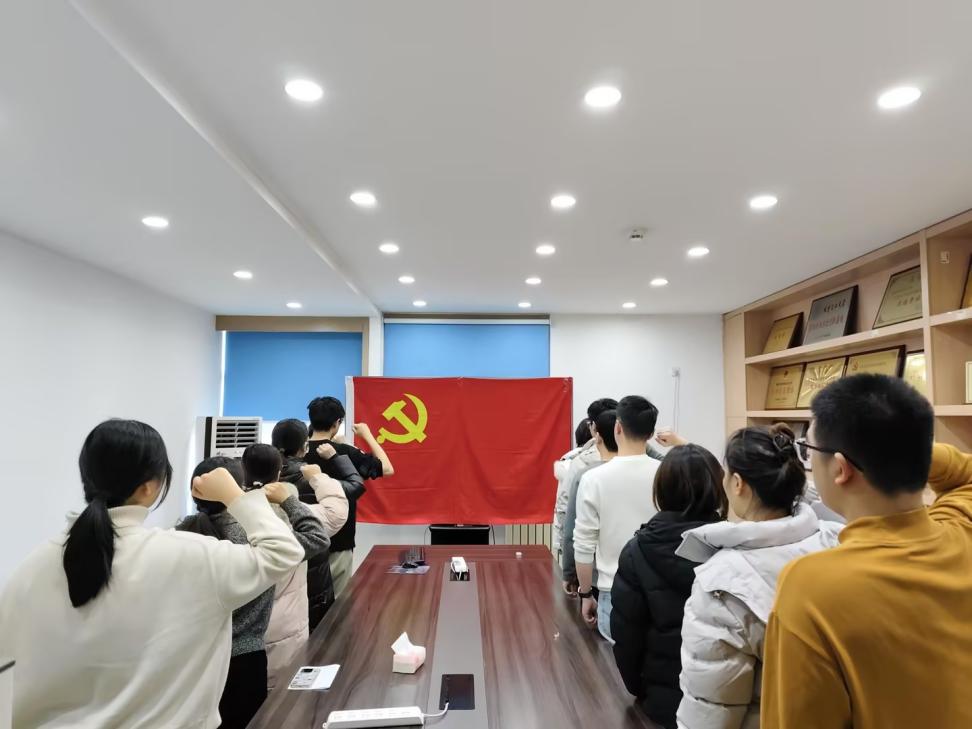 李晓静领誓,全体新发展党员面向鲜红的党旗举起右拳,庄严宣誓,铿锵誓言表达了对党的忠诚与为共产主义事业奋斗终身的坚定决心。