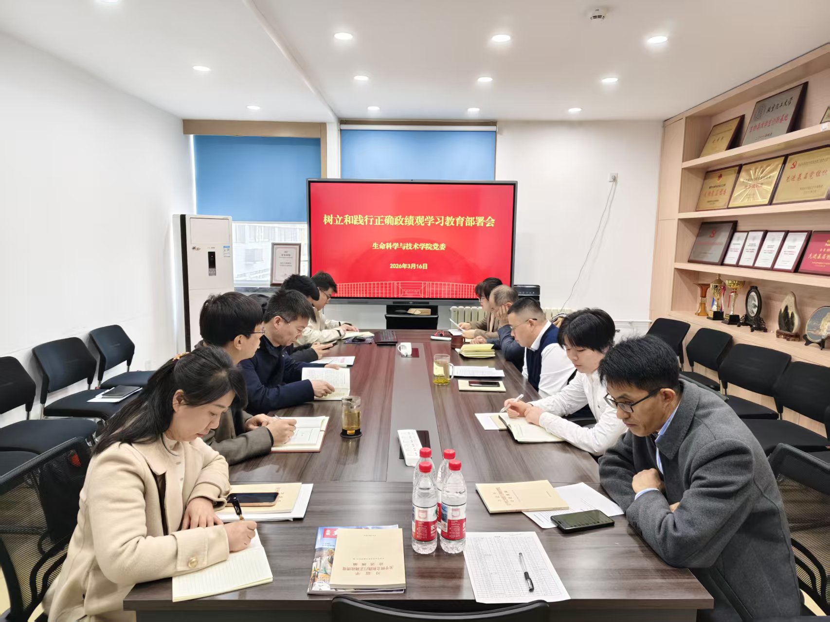 为深入贯彻落实党中央关于树立和践行正确政绩观学习教育的重大决策部署,切实把全院党员干部的思想和行动统一到上级党委工作要求上来,2026年3月16日上午,生命科学与技术学院党委在科技大厦304会议室召开树立和践行正确政绩观学习教育部署会。学院领导班子成员、党委委员、各教工党支部书记、学生党总支书记参加会议,会议由学院党委书记曹辉主持。