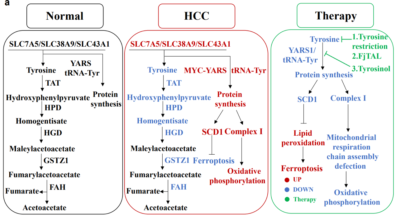 肝癌的代谢重编程常涉及氨基酸代谢。然而,已有研究很少阐明氨基酸利用如何支持肿瘤增殖的确切分子基础。该研究通过聚焦于酪氨酸代谢特异的酶学及翻译机制,揭示了tRNA在介导这一过程中的关键作用,提供了研究范式。